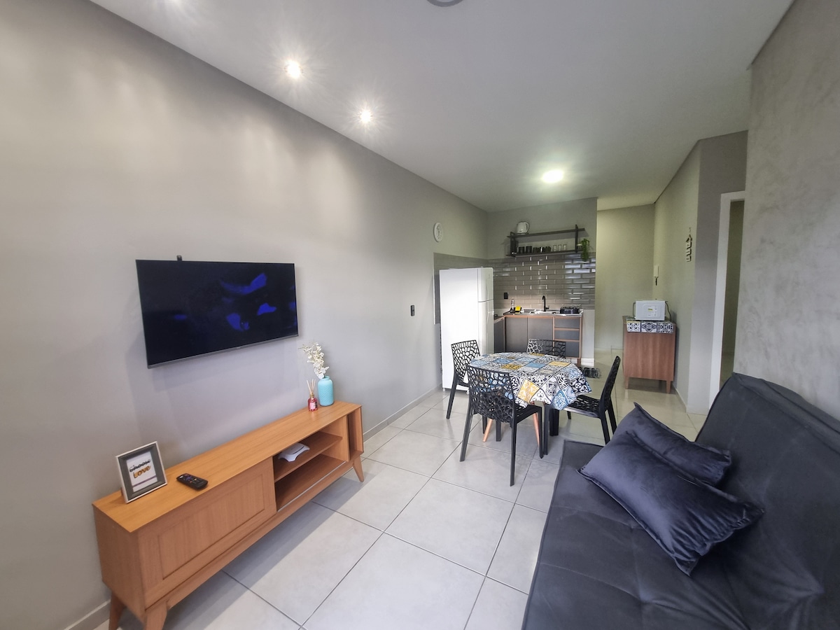 Confortable et bien équipé, l'appartement dispose de la climatisation dans le salon et la chambre, ainsi que d'un barbecue. Idéal pour les familles et les couples à la recherche de repos, de plaisir et de confort. Il est à seulement un demi-pâté de maisons de Prainha et à 10 minutes à pied des plages d'Enseada et de Praia Grande, avec un accès facile aux attractions de la région. À proximité de restaurants, de bars, de pizzerias, de marchés, de boulangeries et de services essentiels. Il n'y a pas de garage, mais il est possible de se garer dans la rue devant l'immeuble, qui est calme.