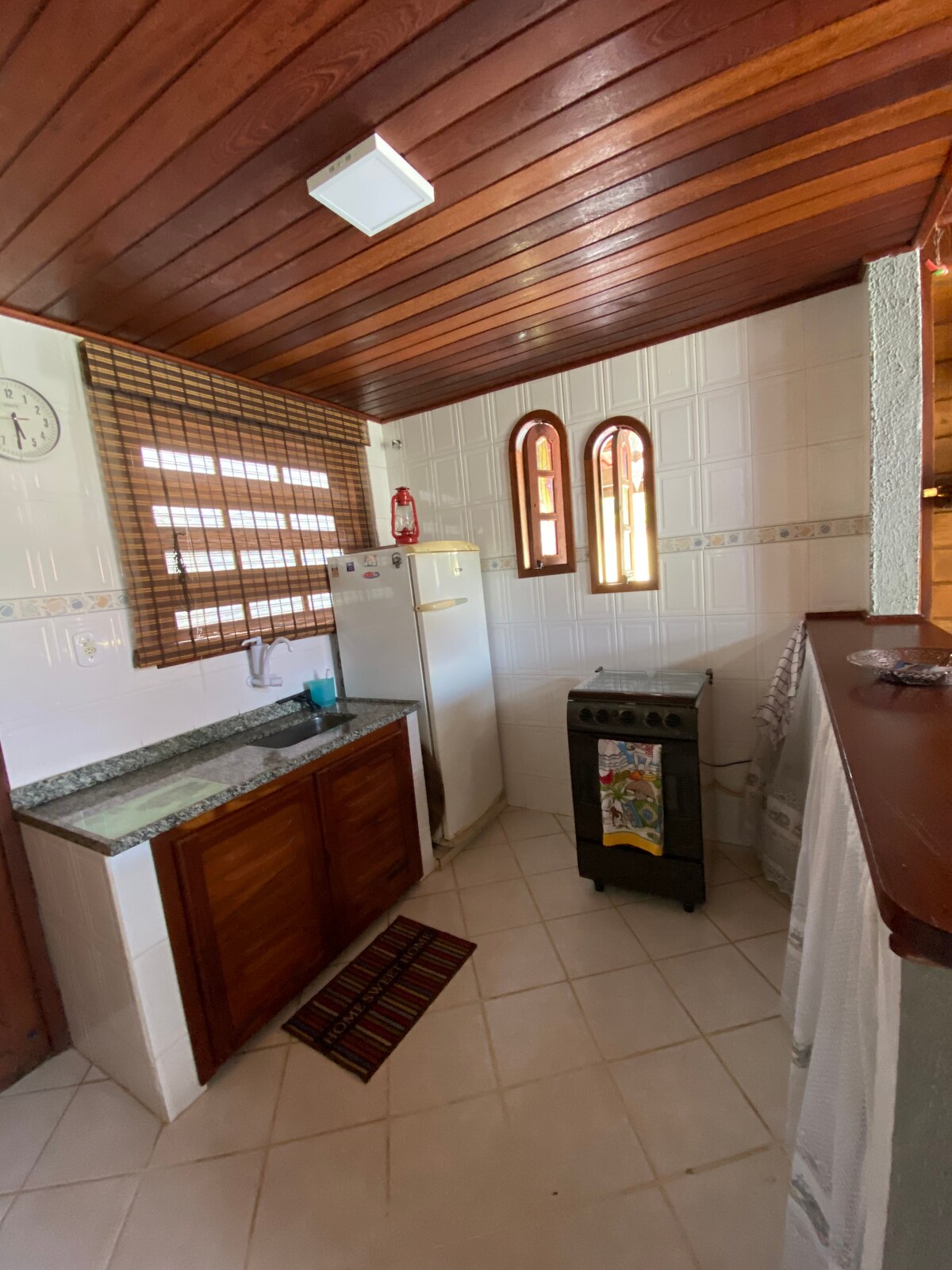 Mini maison confortable avec grande cour arrière, composée d'un salon/cuisine américain, de 2 chambres, d'une salle de bain, d'un espace de service et d'une connexion Wi-Fi. Saquarema o Maracanã do Surf, a de belles plages, des lagunes, des cascades, de l'équitation, un vol de parapente, des sentiers, entre autres activités amusantes. Détendez-vous dans cet endroit unique et calme.