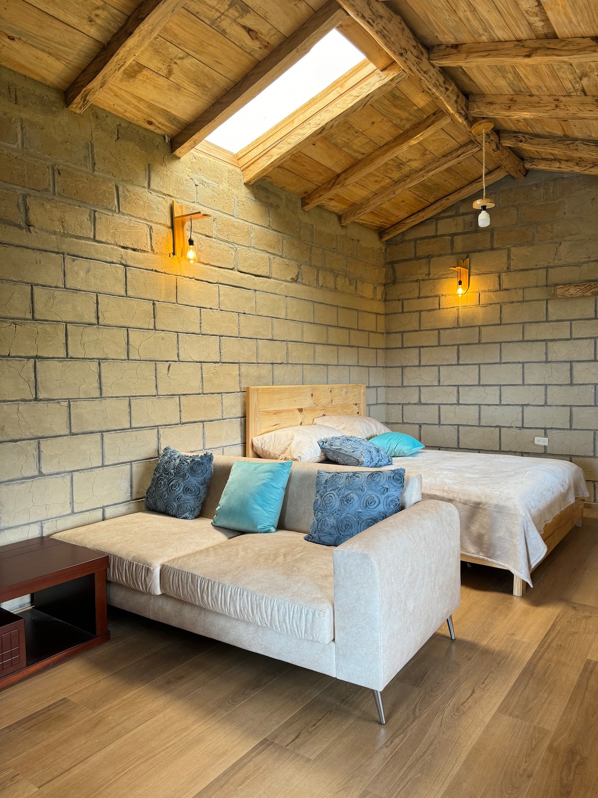 Découvrez notre suite, un espace conçu pour le repos et la connexion avec la nature. Avec son atmosphère chaleureuse, ses détails rustiques et tout le confort nécessaire, c'est l'endroit idéal pour se détendre et vivre une expérience unique.