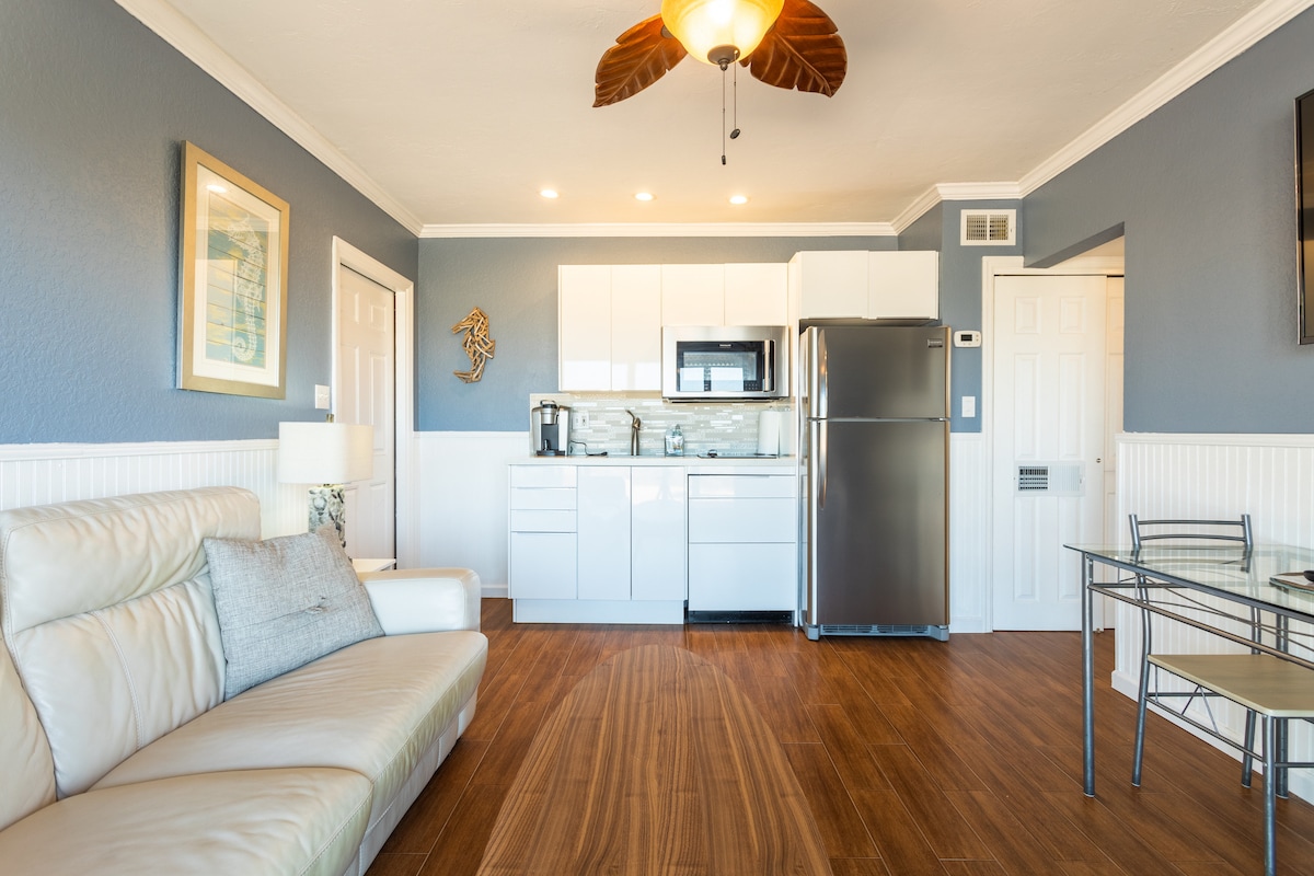 La Studio Suite de notre hôtel Siesta Key peut accueillir 1 à 2 personnes. Chaque chambre dispose d'un lit king size, d'une télévision 42 pouces, d'une table à manger ainsi que d'une kitchenette entièrement équipée en acier inoxydable. Parfait pour les couples ou les voyageurs seuls. Toutes nos chambres ont récemment été mises à jour pour être aussi attrayantes qu'à l'aise. Les King Studio Suites sont meublées dans une décoration balnéaire élégante, y compris un patio confortable avec des chaises et un parasol pour vous détendre et profiter du temps merveilleux que le sud de la Floride a à offrir.