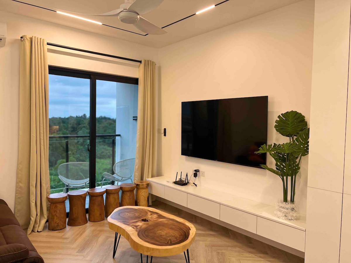 Bienvenue à Dandelions @ Riverine Diamond Condominium ! Dandelions est une unité fraîchement meublée située dans le centre de Kuching. Nous avons incorporé les vibrations vertes luxuriantes de Bornéo dans la conception de ce logement, souhaitant vous apporter une ambiance rafraîchissante et rajeunissante de Bornéo tout en profitant du logement spacieux équipé de beaux meubles. Notre balcon privé offre une vue incroyable sur la rivière Sarawak, le mont Santubong et la piscine à débordement, et il bénéficie d'une brise fraîche toute la journée.