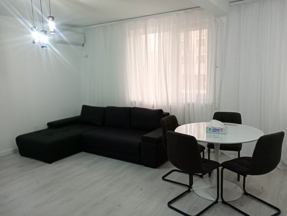 Tout un appartement confortable de 70 à 2 séjours à votre disposition dans le but de vous faire sentir que c'est votre résidence secondaire à un prix abordable. Il est initialement pour 4-6 personnes (2 lits Queen, 2 lits simples et 1 canapé lit). L'appartement est situé dans un quartier agréable et calme. Différentes activités restent à votre disposition dans cette belle ville, Tulcea.