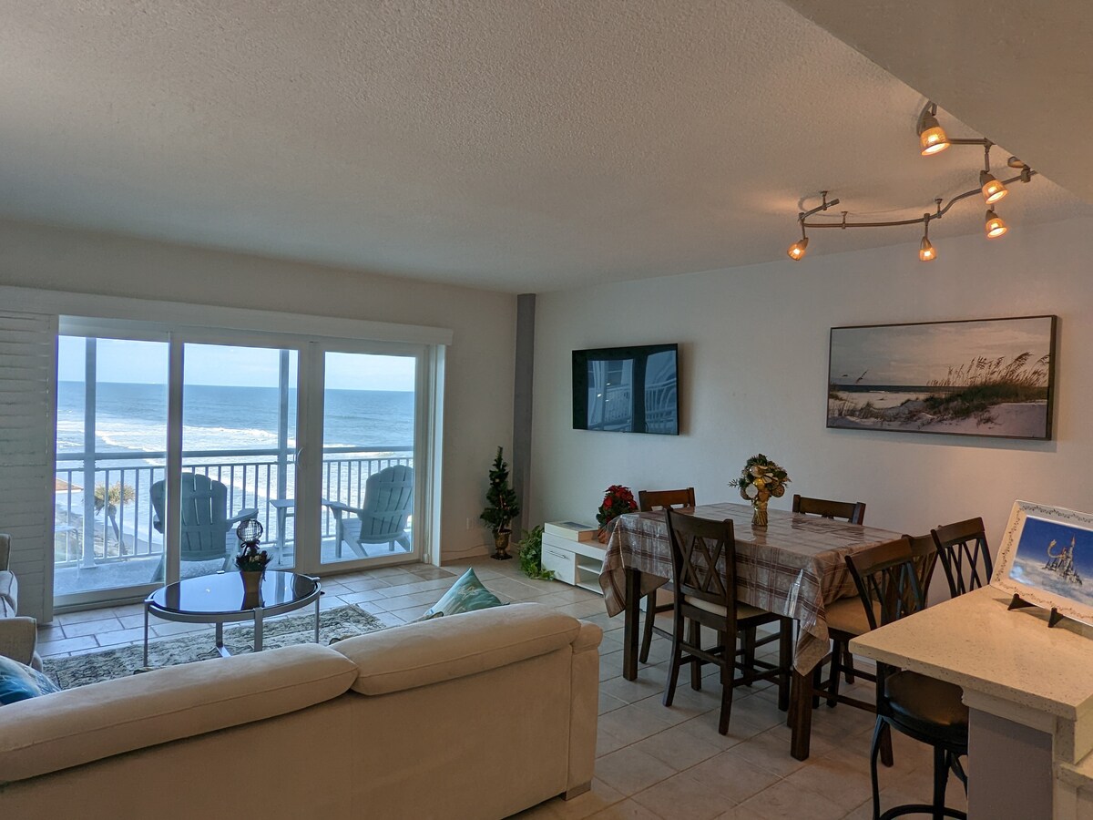 À quelques pas de la plage ! Suite haut de gamme et spacieuse avec 1 chambre et 1 salle de bain. Vue imprenable sur l'océan sous tous les angles, y compris la porte coulissante en verre triple, le balcon et les fenêtres surdimensionnées de la chambre ! Voyez et ressentez les lancements de fusées depuis le balcon privé. Parfait pour les aventuriers aquatiques ou les amis proches. Aménagé avec goût et récemment rénové, attendez-vous à un emplacement idyllique pour vous amuser sur l'eau avec luxe pour 4 personnes maximum. Près de Disney/Orlando Airport, Kennedy Space Center, Port Canaveral, Cocoa, Melbourne