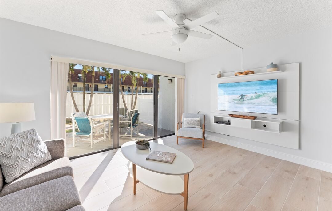 **PLEASE BE ADVISED RENOVATION WILL BE OCCURRING WEEKDAYS IN PARTS OF THE COMPLEX DURING THE MONTHS OF JUNE THROUGH DEC 2025-dates are discounted**Beautiful sunrises from your private balcony! Sip your morning coffee or evening cocktail while watching dolphins, sea turtles, or rockets. Renovated 2 story 2 bed 2 bath condo accommodates up to 6. Ideal for couple, family or close friends. Private beach and heated pool for your sun-soaking and cooling off pleasure. Don't forget your fishing pole!
