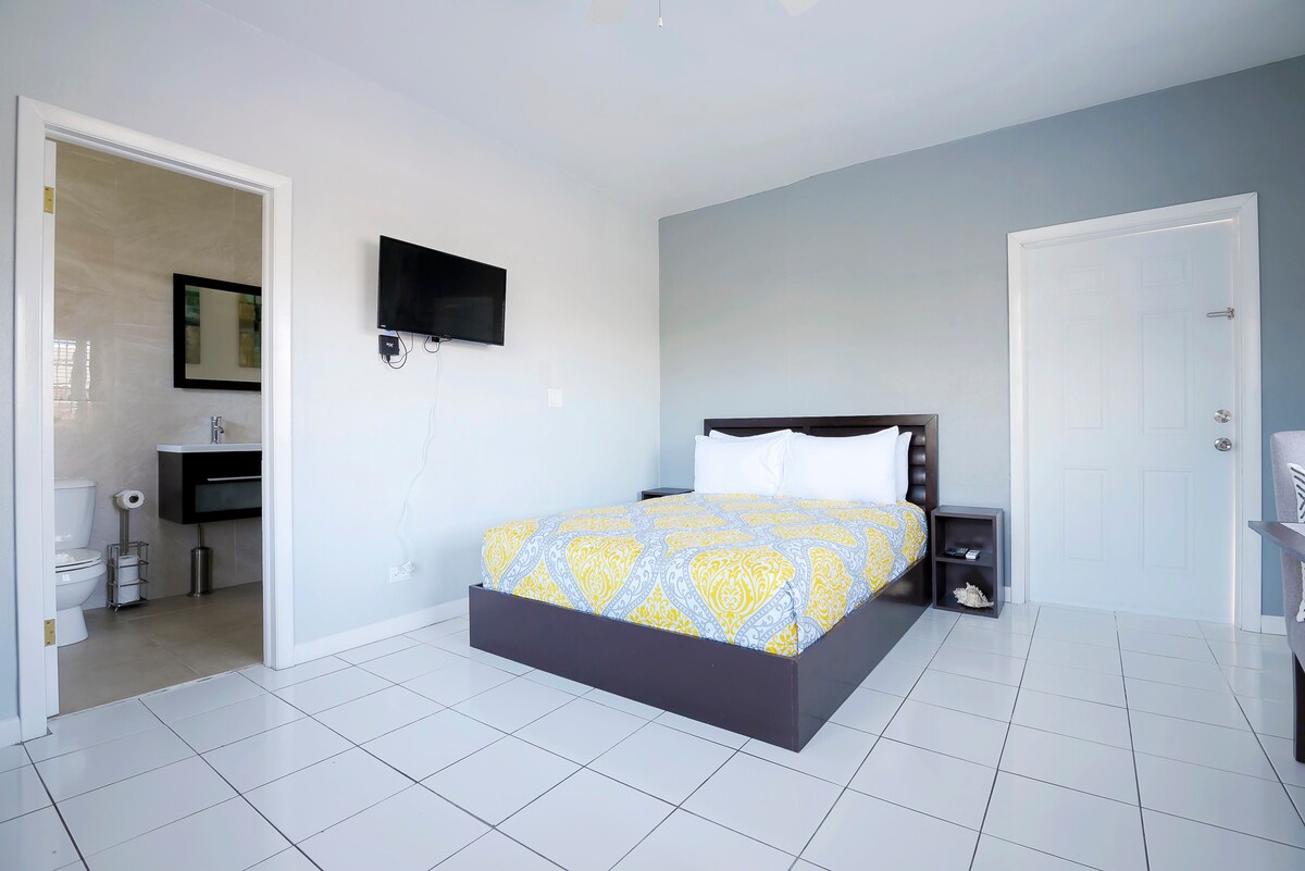 Studio confortable avec le charme de l'île. À 30 secondes en voiture de la plage de Junkanoo. À 10 minutes de l'aéroport. Très proche du centre-ville, de l'ambassade des États-Unis, de la vie nocturne, des restaurants, des magasins d'alimentation, de l'Arawak cay, de l'arrêt de bus à une minute à pied. La télévision dispose de Netflix. Eau chaude disponible.