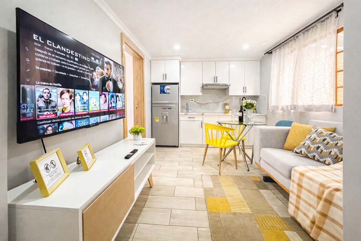 Ce Airbnb est un bijou en face de la nouvelle cathédrale de Cuenca, avec chaque détail pensé pour un séjour exceptionnel. Profitez d'une salle de bain impeccable (elle est petite), d'une cuisine fonctionnelle, de grands miroirs et d'un coquet idéal pour vous maquiller. Le repos est garanti avec un matelas spécial et une lingerie en coton de haute qualité. Vous trouverez ici tout ce dont vous avez besoin pour rendre votre expérience à Cuenca confortable et mémorable. Un séjour parfait en plein coeur de ville vous attend !