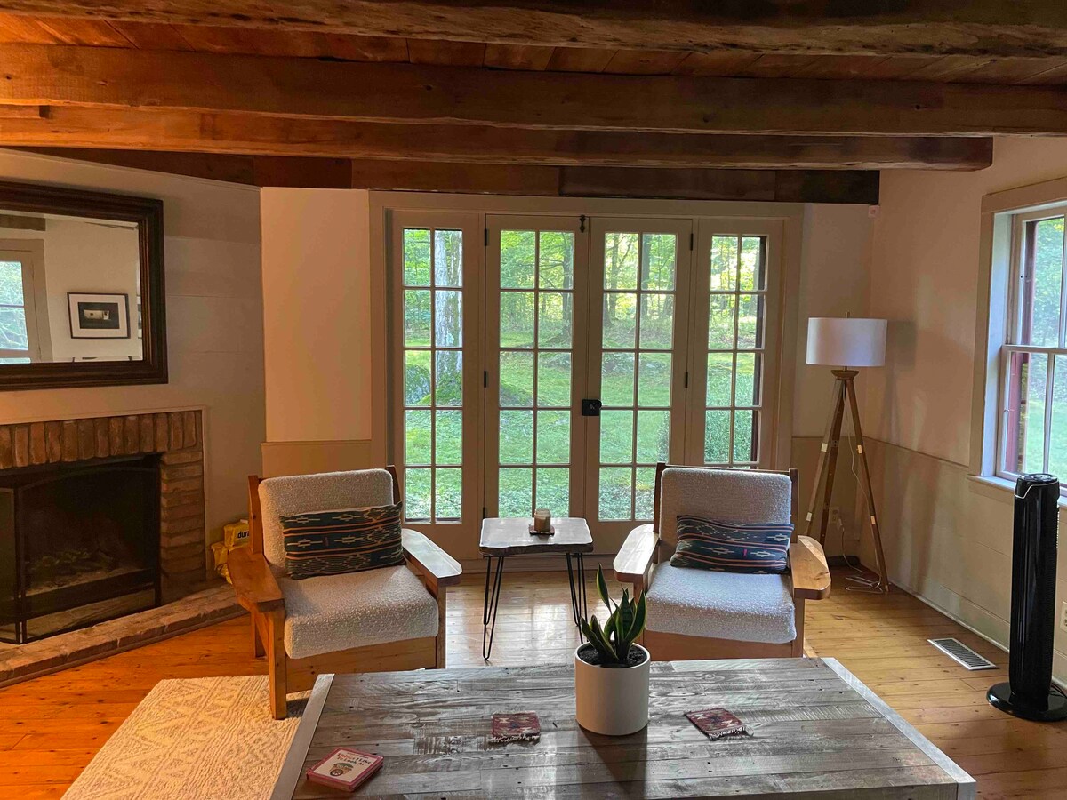 Refuge lumineux et aéré dans le village de Catskill : un havre de fleurs sauvages et d'animaux sauvages au cœur de l'action. Maison historique située sur un quart d'acre d'arbres et de fleurs sauvages, mais à quelques pâtés de maisons de Main Street, Catskill. Marchez jusqu'à Foreland, The Lumberyard, l'incroyable cimetière du village, Thomas Cole House, les restaurants et les commerces. Le site historique de l'État d'Olana est juste de l'autre côté du pont ! Le chalet dispose d'une cuisine complète, d'une baignoire sur pattes, d'une douche carrelée, d'un porche avant, d'une salle à manger et d'un grand salon. Vraiment paisible et charmant.