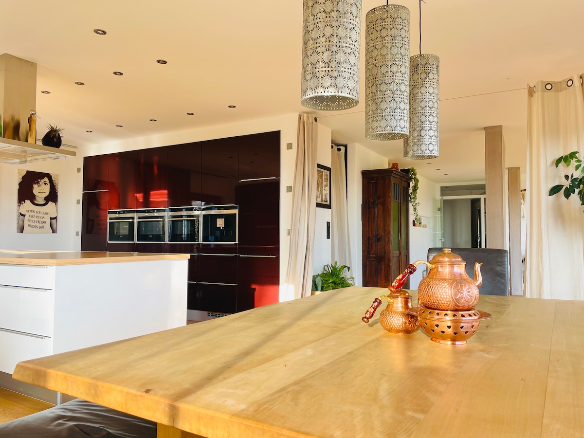 Élégante grange ancienne restaurée dans un endroit isolé magnifique, offrant 120 m² d'espace avec vue panoramique sur la campagne, une galerie de 50 m² avec de grandes fenêtres, une cabine infrarouge, une douche à l'italienne, une baignoire, une cuisine design de luxe, un sol en marbre terrazzo avec chauffage électrique au sol, un poêle en faïence historique de 1700 et un jardin clôturé pour autant de chiens que vous le souhaitez. Un rêve à seulement 15 minutes de Passau, à 3 minutes de l'autoroute et à 10 minutes du Danube. Réservable à partir de novembre 2025