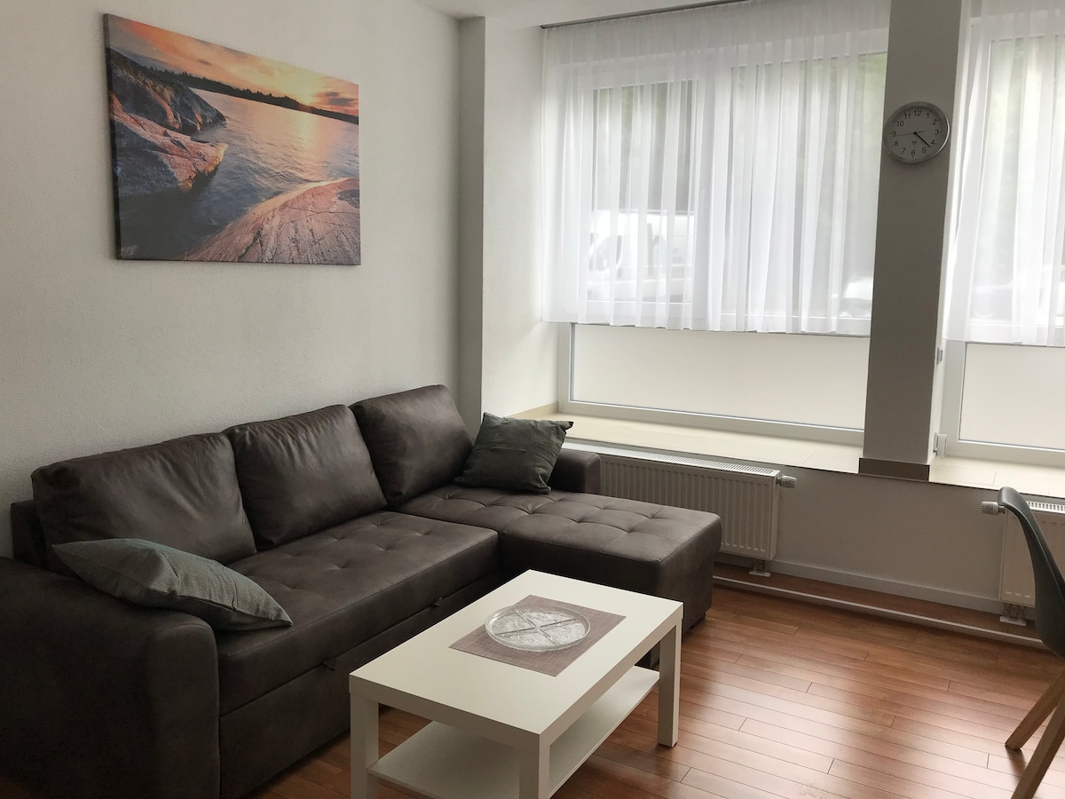 « Apartment Trier » est un appartement très lumineux et confortable au dernier étage d'une maison calme, idéal pour les voyageurs en solo ou les couples, que ce soit pour les vacanciers ou les professionnels. Cuisine entièrement équipée ! Salle de bain séparée avec douche et WC, seulement du parquet et du carrelage ! Idéalement situé en termes de transports, soit à pied (15 min.) ou en bus directement dans la vieille ville. Liaison de bus avec l'université à proximité, ainsi que trois supermarchés et un café.