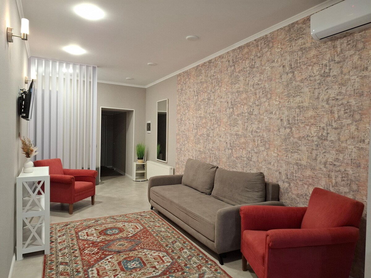 DĂ©tendez-vous dans un appartement Ă©lĂ©gant au cĆur de Chisinau, avec des finitions en marbre et en bois naturel. Vous apprĂ©cierez un matelas Vi-Spring de qualitĂ© supĂ©rieure, un grand bain et un balcon avec un foyer dĂ©coratif. L'appartement dispose de rideaux tĂ©lĂ©commandĂ©s et d'une machine Ă expresso Ă grains de cafĂ© Le quartier bĂ©nĂ©ficie d'une rĂ©ception et d'une sĂ©curitĂ© 24 h/24, vous offrant une sĂ©curitĂ©, un confort et une tranquillitĂ© d'esprit supplĂ©mentaires pendant tout votre sĂ©jour.