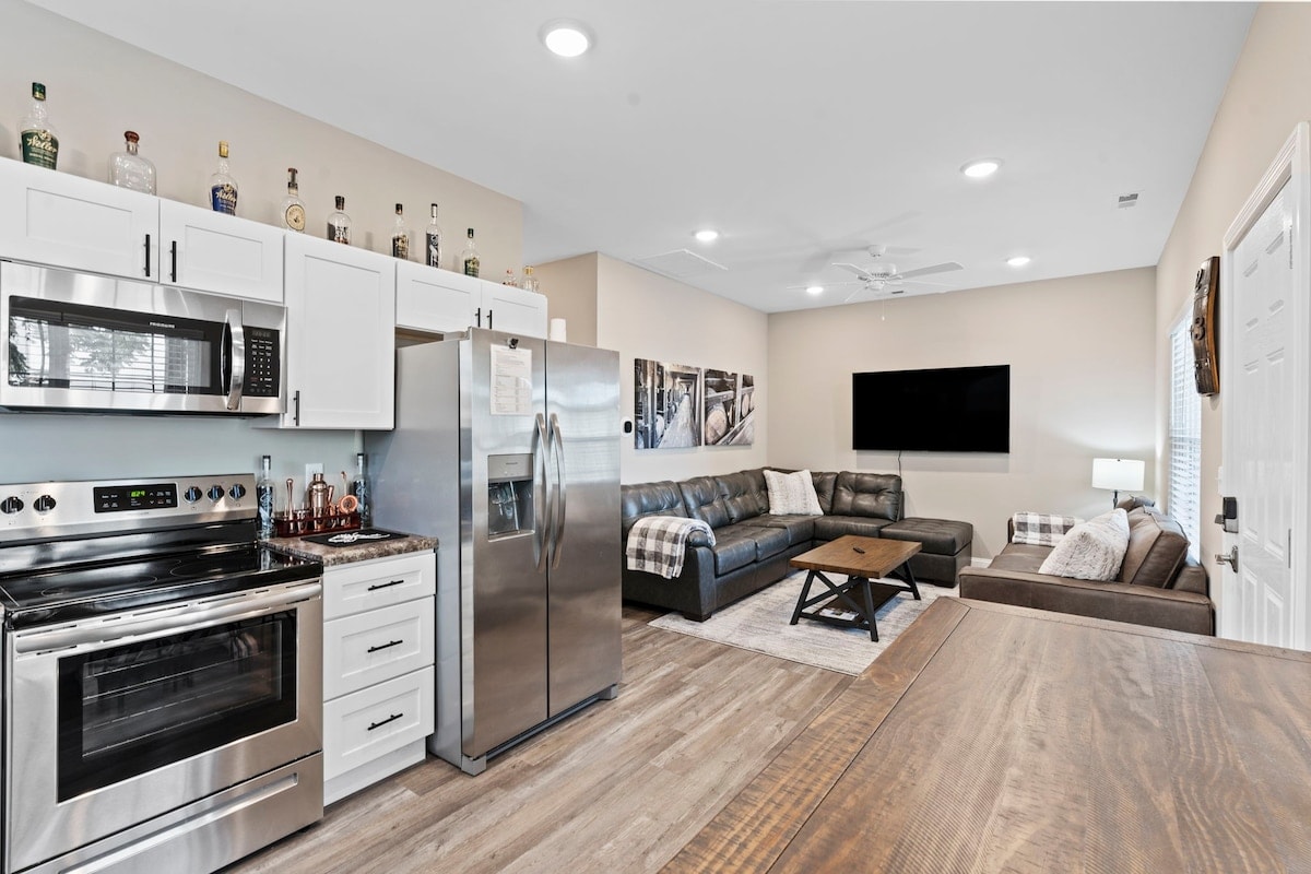 Bienvenue à The Bourbon Run ! Cette NOUVELLE maison de 4 chambres et 2 salles de bain du centre-ville offre un mélange parfait de luxe moderne et de style associé au charme rustique du bourbon du Kentucky. Chaque détail de cette maison a été pensé pour offrir une expérience parfaite. Profitez d'un salon ouvert, d'un coin feu, d'un patio couvert avec jacuzzi et d'un gril hibachi Blackstone ! Nous avons hâte de vous rencontrer !