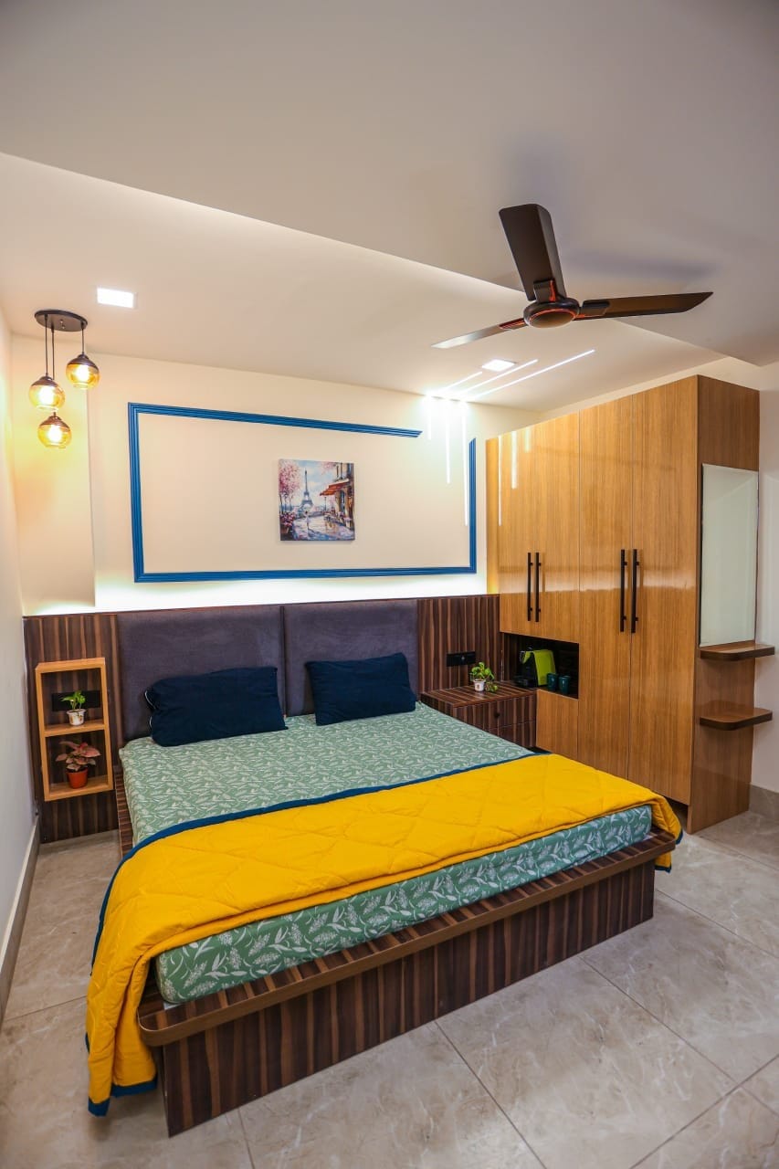 Profitez du confort et du style dans un sanctuaire conçu pour le travail et la détente. Reposez-vous sur un matelas orthopédique Wakefit et profitez d'un éclairage ambiant chaleureux. Restez productif avec un espace de travail ergonomique et détendez-vous avec deux téléviseurs de 42 pouces. La salle de bain attenante offre des articles de toilette haut de gamme et un miroir éclairé. Cuisinez sans effort dans une cuisine toute équipée. Détendez-vous sur le sofa dans un espace où la paix, la productivité et le style de vie se mélangent parfaitement.
