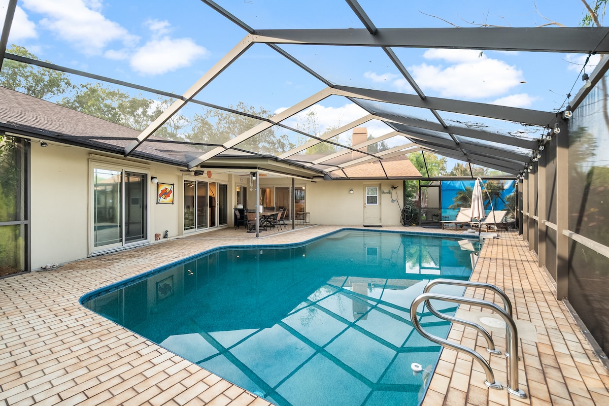 Créez des souvenirs inoubliables dans ce logement unique et familial ! Votre maison de vacances vient de terminer une rénovation de la tête aux pieds. Tout ( et nous voulons dire tout ) est neuf ! Détente et désintoxication dans le RARE SAUNA pour 4 personnes ! Profitez de l'IMMENSE SPA pour 6 personnes. Profitez du riche soleil de Floride au bord de la piscine sous la grande pergola de style complexe hôtelier de 27 pieds. À seulement 3 miles de la plage la plus proche 🏖️ À 300 pieds du sentier Pinellas ! ! WIFI LE PLUS RAPIDE DISPONIBLE -668MBP Une question ? ? Envoyez-moi un message !
