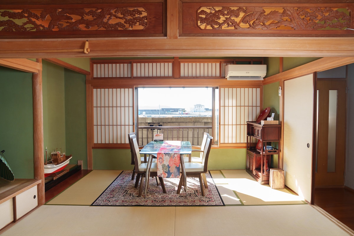 Navette gratuite de l'aéroport de Kansai. Villa de style japonais de 640 m², chambre avec vue sur la mer, ancienne maison de famille « Weiwei Pavilion ». Possibilité d'organiser un barbecue, pêche en mer avec appâts, poisson de mer offert
