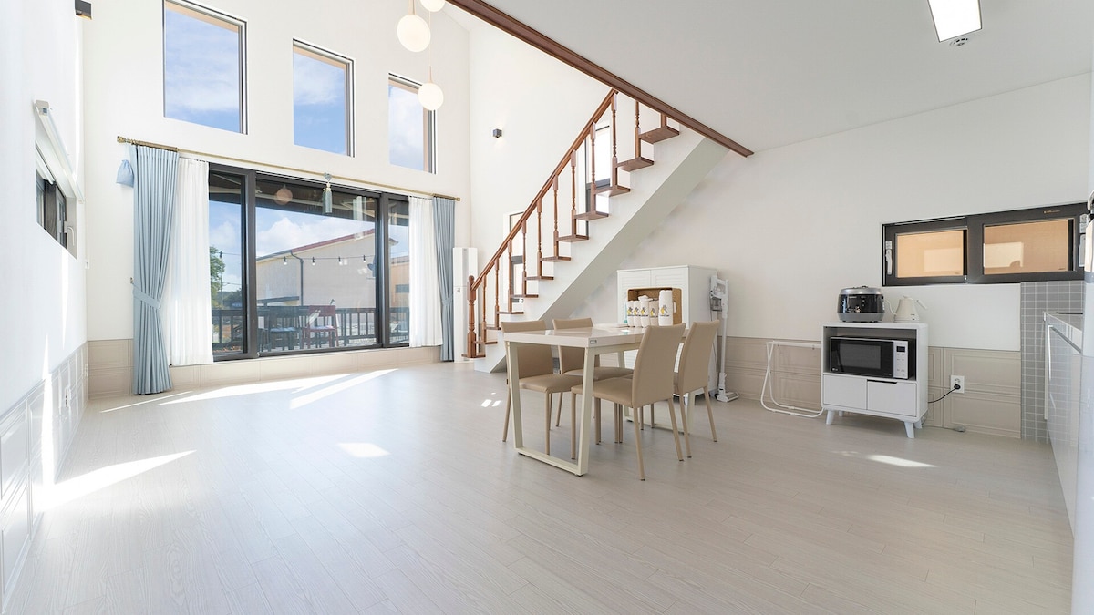 Profitez d'une cuisine simple à la table extérieure située sur la terrasse avec grenier et terrasse sur le loft, et profitez d'un souvenir inoubliable dans ce home cinéma unique mais familial du grenier. Netflix est possible. C'est un grand parking au sous-sol, et plusieurs véhicules peuvent être stationnés en même temps. Si vous souhaitez rester plus d'une semaine, veuillez nous consulter ^ ^