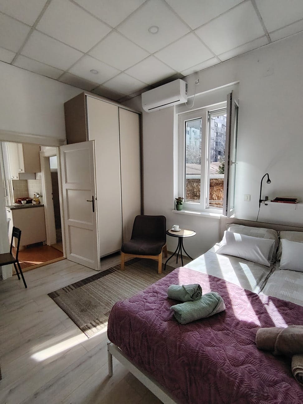 Bienvenue au Crown Suite – un duplex moderne situé en plein cœur de Belgrade, dans la prestigieuse rue Krunska, à deux pas des ambassades, de la place Slavija, du parc Tašmajdan et de la cathédrale Saint-Sava. Parfait pour 2 à 3 personnes – voyageurs, nomades digitaux ou professionnels. Le logement est une oasis de calme au centre-ville, avec une terrasse privée, une petite cour, et une entrée indépendante (serrure digitale – check-in 24h/24).