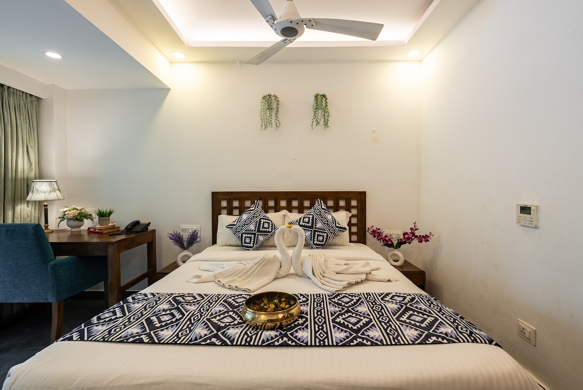 Panjim minimaliste | Chambre King chic | Café et piscine