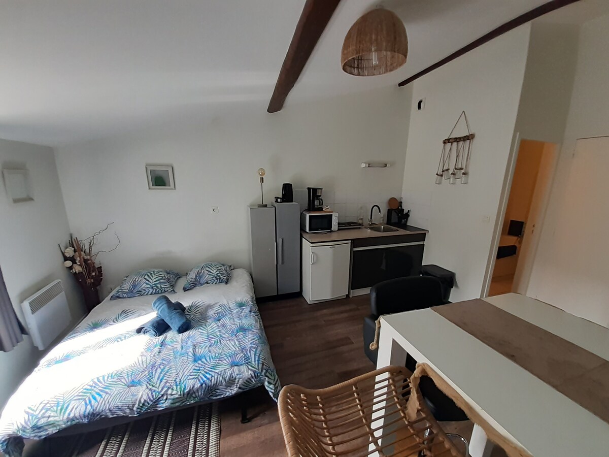Studio 24 m2 en RDJ d'une villa avec entrée indépendante et place de parking gratuite dans la cours fermée de la villa. Petite cuisine équipée . Terrasse privative Literie 140x190 et canapé convertible Le logement se situe à 1 km du centre ville (4 min en voiture, 10 à 15 min à pieds), des commerces, bars, restaurants et du théâtre antique et autres sites à visiter. Appartement bénéficiant d’une fraîcheur agréable l’été. Arrêt du bus de ville à 100m
