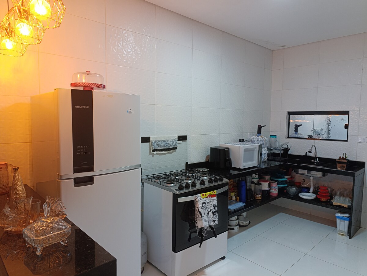 Cette maison respire la tranquillité: détendez-vous avec toute votre famille et profitez de cette oasis du Sertão! Caractéristiques: Veuillez noter que la maison est au sous-sol (elle a des escaliers). Localisation: POINTS TOURISTIQUES Téléphérique SESC - 3 min Casa das Almas - 3 minutes Théâtre Cinéma Guarany - 4 min Águas Parque - 5 min Engenho São Pedro - 5 minutes RESTAURANTS ET BARS Sabor da Roça - 2 min Papo Pizza et Papo Burguer - 3min Pôle Gastronomique - 3min Praça Carolino Campos - 4 minutes Cachaçaria Fogão de Lenha - 4 min