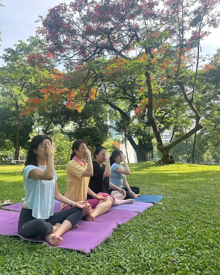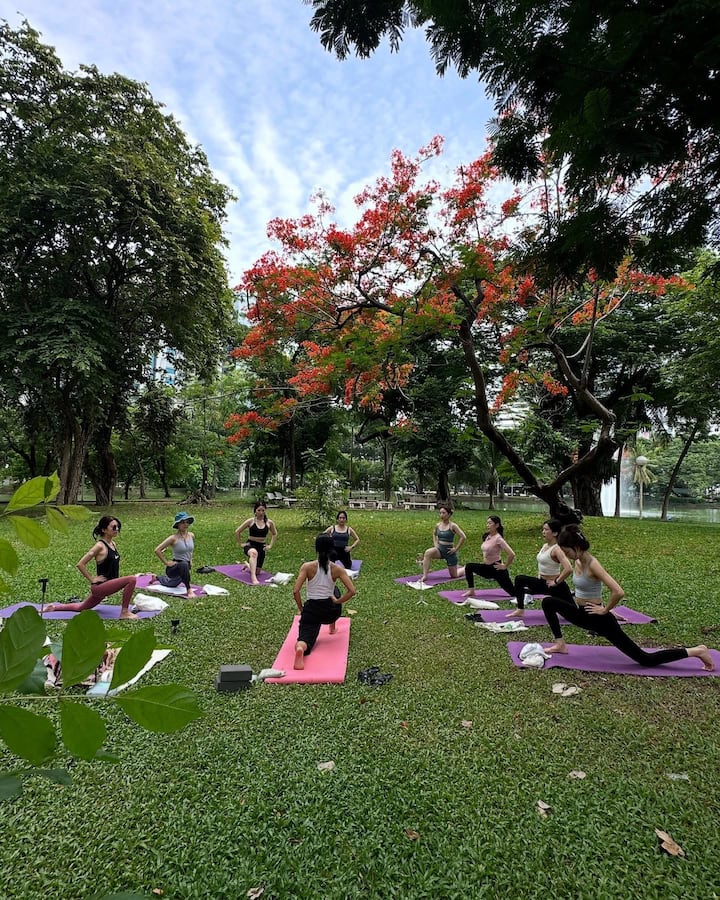 Séance de groupe au parc Lumphini : yoga pour tous les niveaux, connexion du corps et de l'esprit