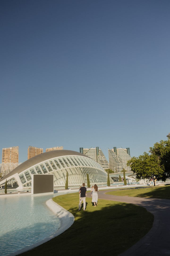 Nous ferons une promenade tranquille dans la Cité des Arts et des Sciences, en avançant lentement, en profitant de l'architecture et de l'atmosphère du lieu.