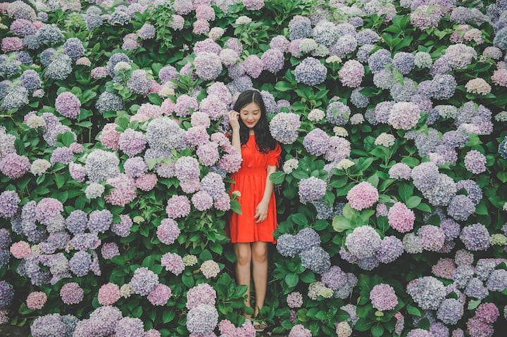 Séance photo individuelle. Forêt secrète de Songdang à Jeju, Oreum à proximité, prise de vue dans divers endroits de l'attraction touristique de fleurs spéciales. Lorsque les fleurs de Seowubong ne sont pas disponibles, nous tournons dans la forêt secrète de Songdang.