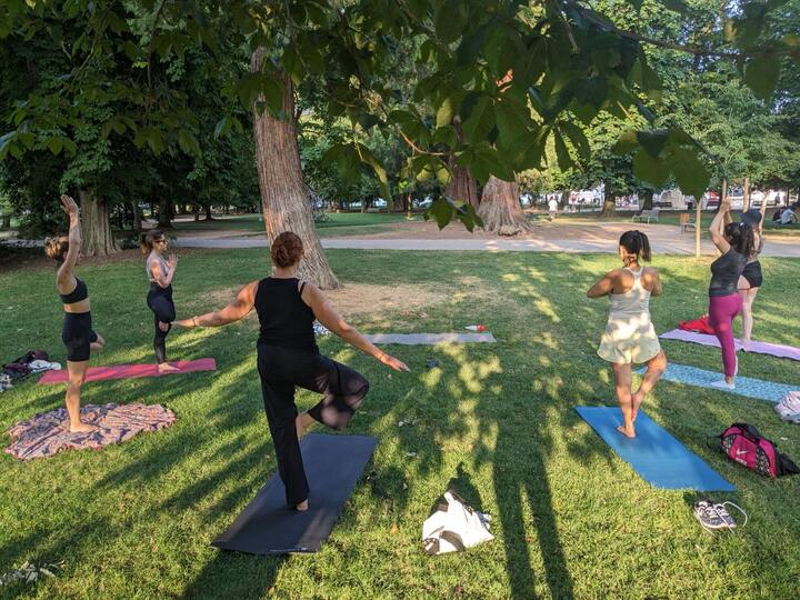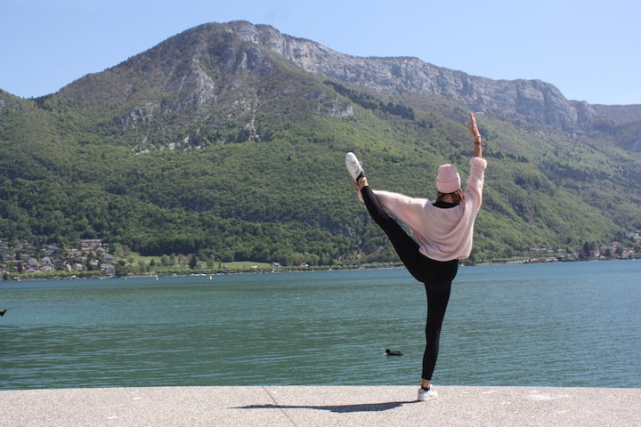 Yoga pour tous au bord du lac d'Annecy, avec des postures adaptées à chaque niveau.