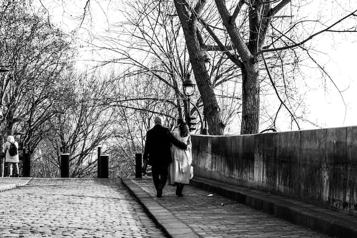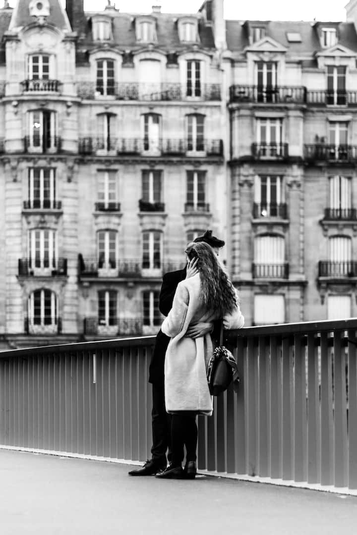 Séance photo de couples sur l'île Saint-Louis au cœur de Paris. Profitez d'un paysage à couper le souffle et créez de beaux souvenirs en vous promenant dans l'Île Saint-Louis.