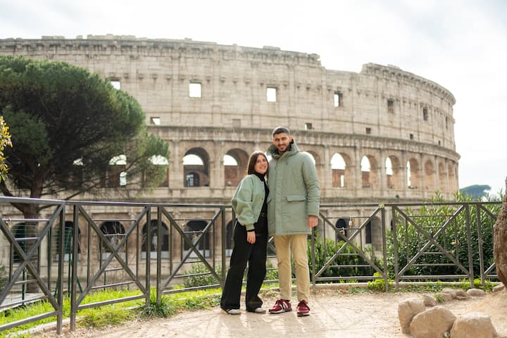 Séance photo inoubliable au cœur de Rome. Nous partirons du Colisée et traverserons les Forums Impériaux en prenant des photos emblématiques. Vous recevrez 20 photos éditées par personne.