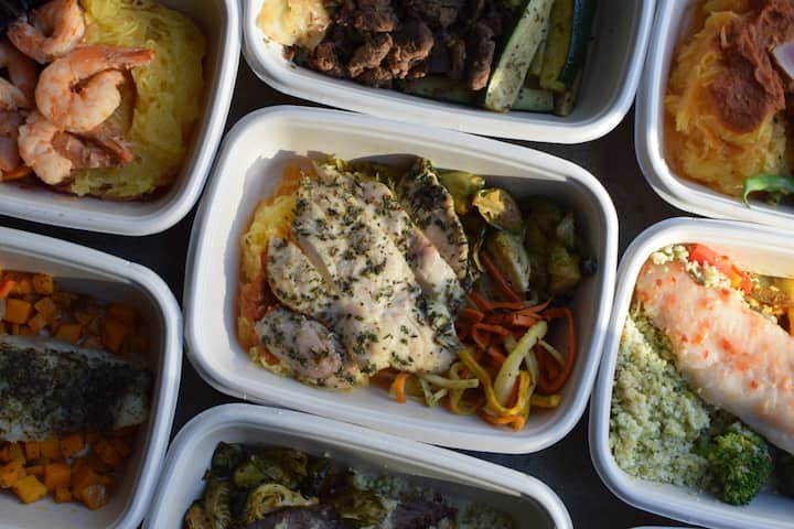 Un repas préparé par un chef, prêt à être réchauffé, livré à votre emplacement.