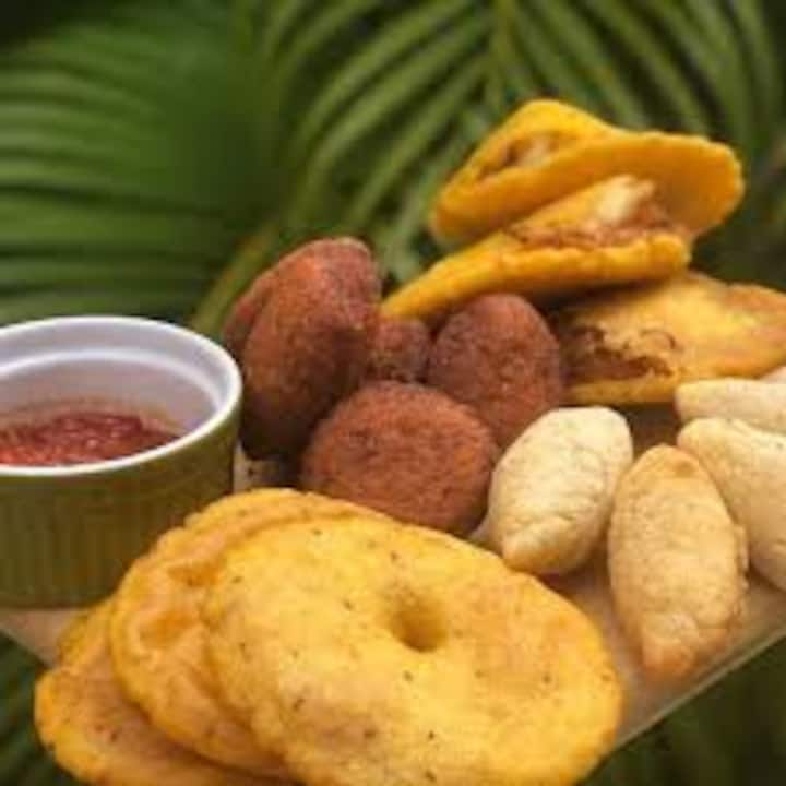 Savourez une variété de collations frites des Caraïbes, notamment des arepas, des empanadas et des pommes de terre farcies.