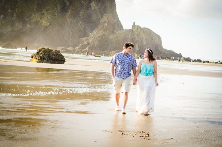 Rendez-vous à Cannon Beach pour une séance photo au cœur de la magnifique côte de l'Oregon. Prenez des photos avec le coucher du soleil en toile de fond et ramenez chez vous des souvenirs magiques.