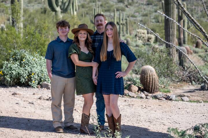 Immortalisez de beaux souvenirs en famille lors d'une séance photo décontractée dans le désert de Phoenix. On se retrouvera dans un endroit pittoresque en plein air et on profitera de la lumière chaude et dorée du coucher du soleil pour créer des images naturelles et intemporelles. Je vous guiderai à travers des poses simples et des moments spontanés pour que vos photos soient authentiques et amusantes. Cette expérience décontractée et adaptée aux enfants est parfaite pour les familles qui visitent Phoenix ou qui y vivent.