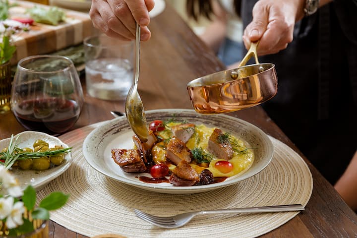 Un dîner personnalisé de plusieurs plats, cuisiné dans le lieu de votre choix, que ce soit chez vous ou dans un espace événementiel. Vous travaillerez avec moi pour créer le menu parfait pour un repas et une soirée inoubliables !