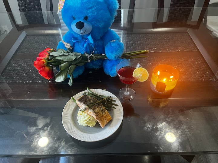 Un repas pour deux avec des accords mets et vins, un dessert et des plats colorés. Parfait pour les occasions spéciales.