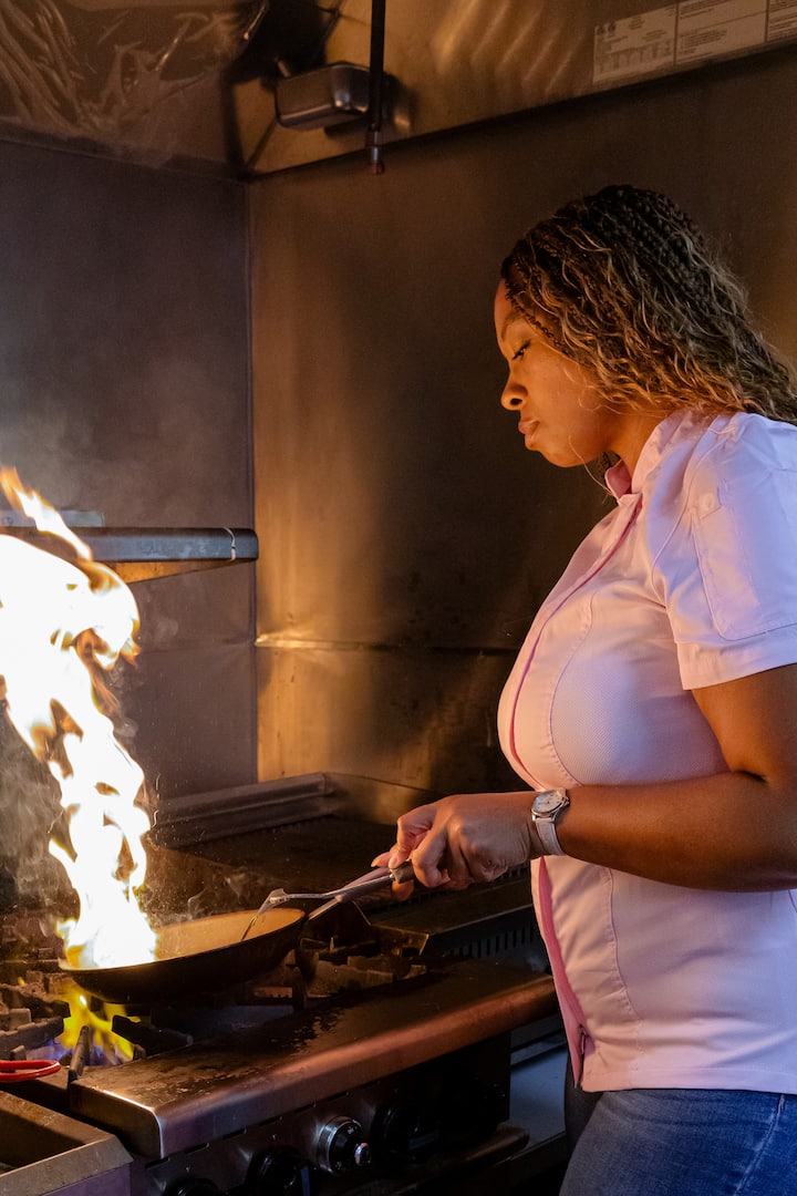 J'ai commencé à 15 ans, et en 5 ans, je suis passée d'hôtesse à cheffe de traiteur exécutive.