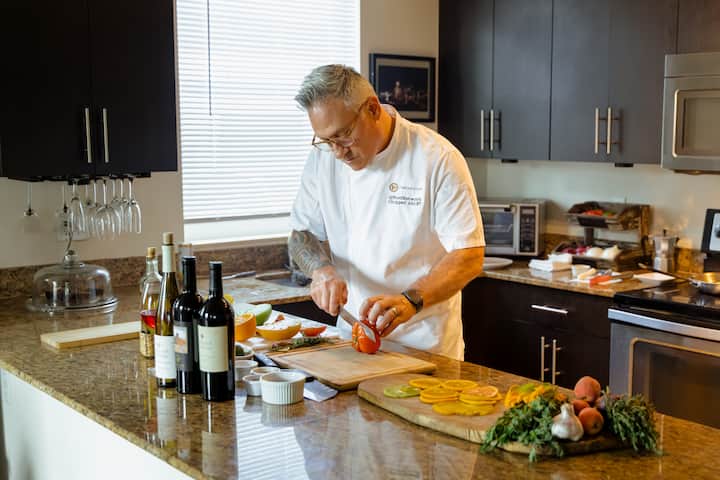 Je me spécialise dans les dîners italiens et méditerranéens avec accord mets et vins.