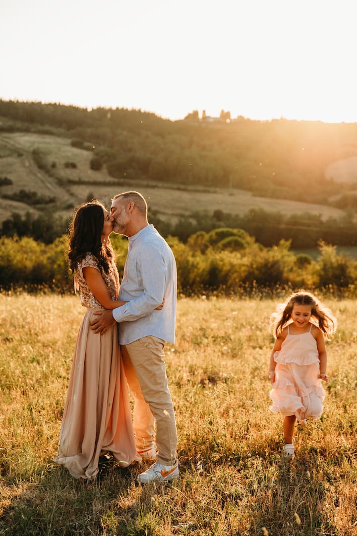 Séance photo au coucher du soleil dans les collines du Chianti, créant des souvenirs spontanés et romantiques.