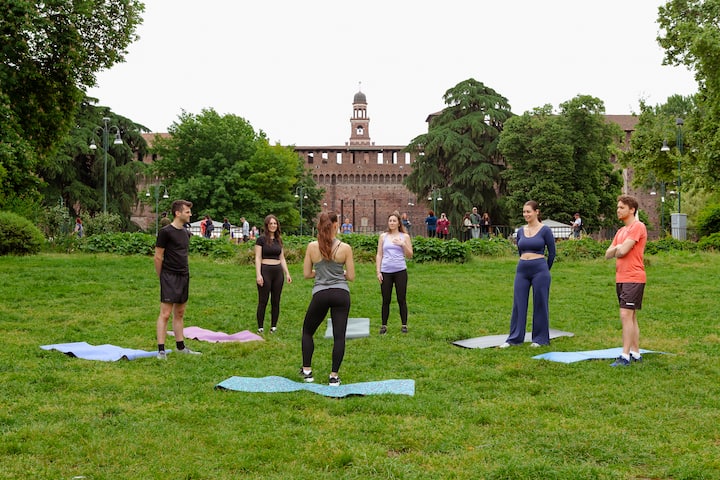 Je propose des séances de cardio dynamiques au Parco Sempione, avec une touche culturelle.