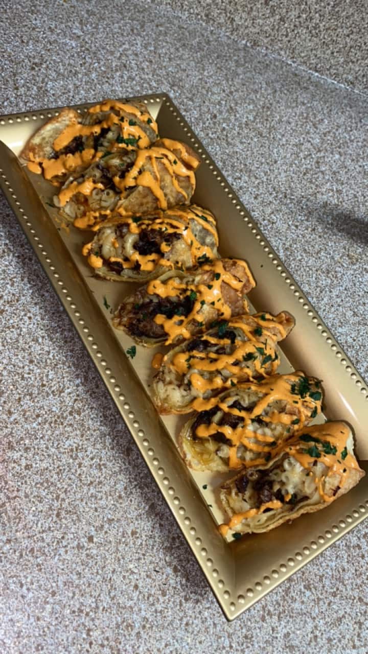 Rouleau impérial de macaroni au fromage et queue de bœuf