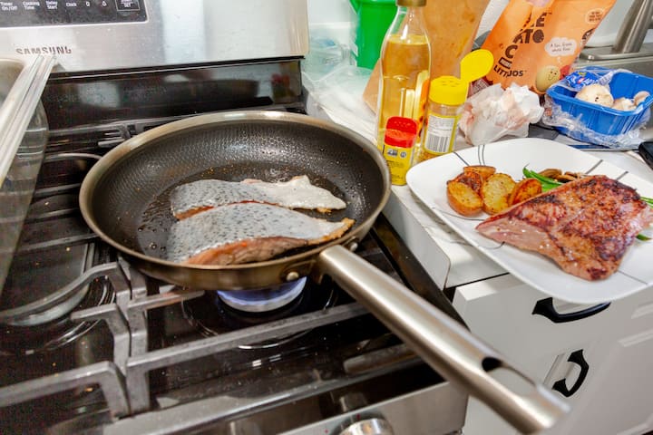 Savourez un petit déjeuner nourrissant préparé dans le confort d'un espace familier.