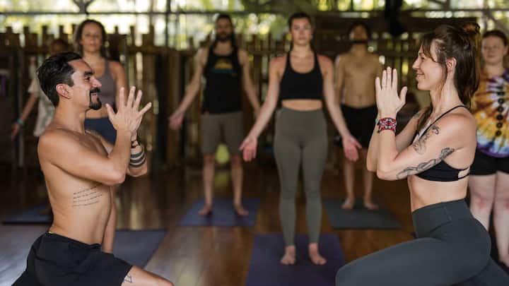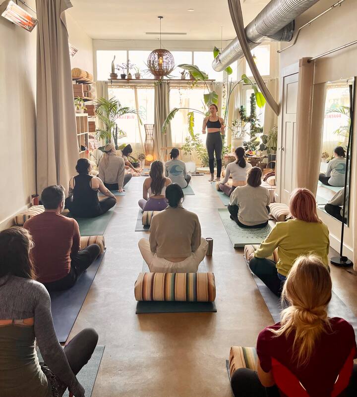 Une séance d'entraînement en groupe avec des ajustements pratiques, un travail de respiration guidé et une méditation plus longue.