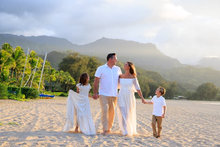 Immortalisez un moment privilégié en famille avec une séance photo dans le décor époustouflant de Kauai, à Hawaï.