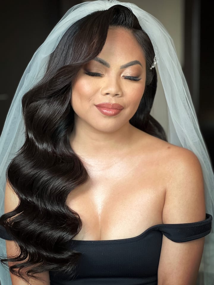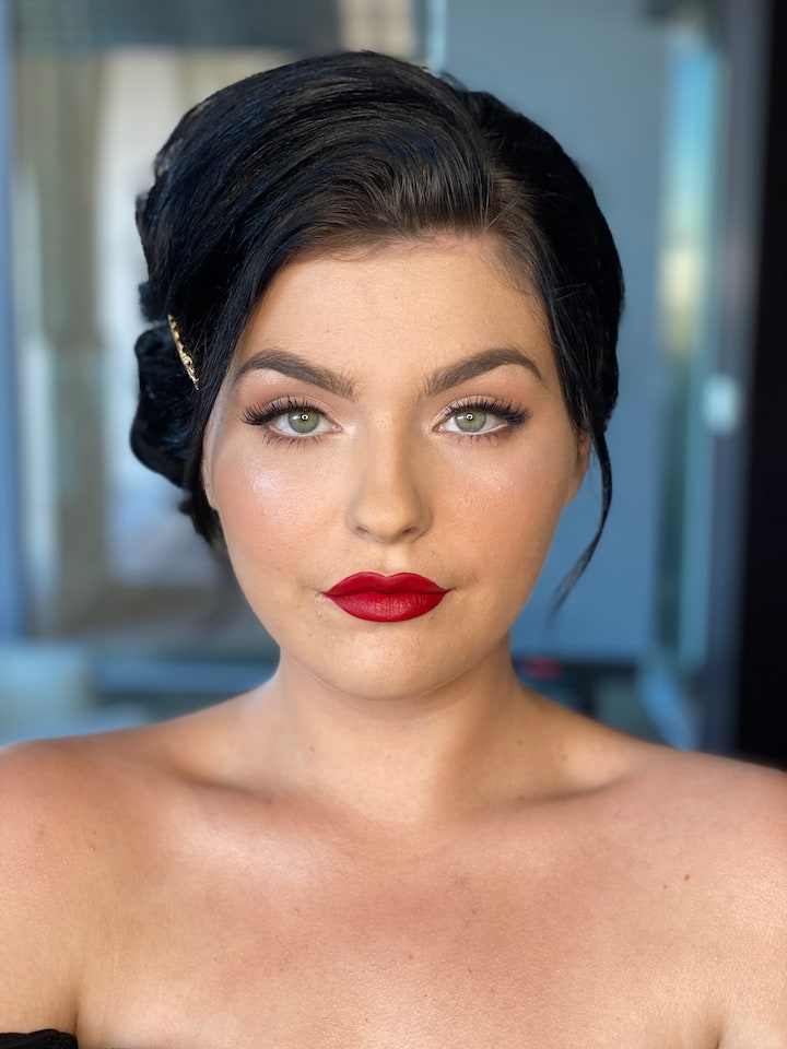 Il s'agit d'un look de mariée haut de gamme comprenant un maquillage HD, une séance d'essai, une préparation de la peau, des cils premium, un kit de retouche et 2 heures de service de retouche.