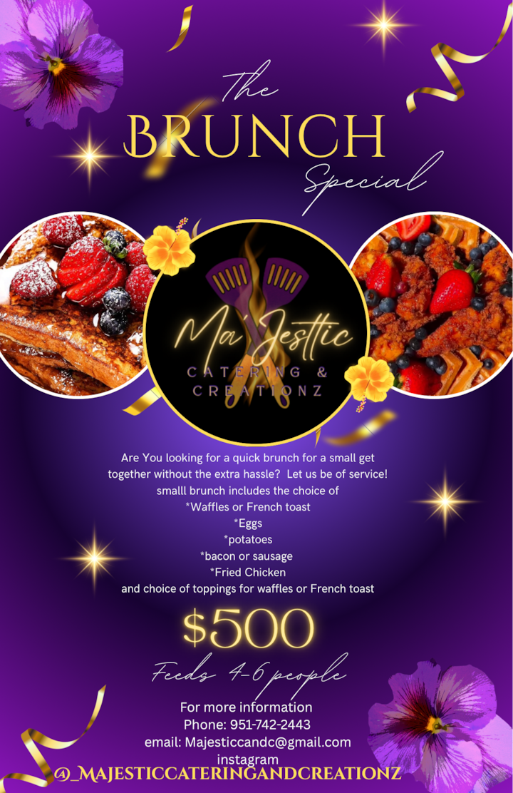 Un éventail d'articles de menu brunch pour 4 à 6 personnes.