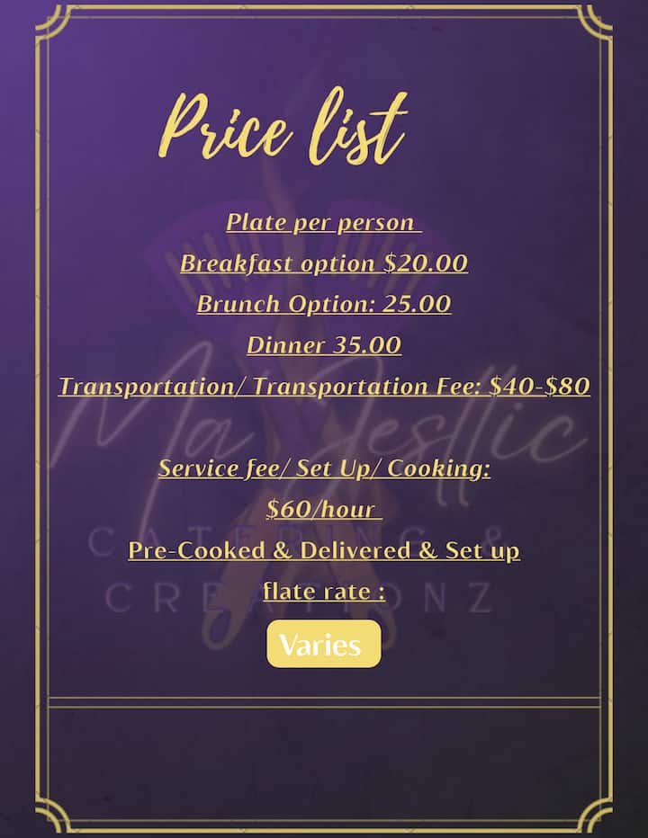 Je gère une entreprise de restauration de luxe, qui propose une gamme de menus pour toutes les occasions.