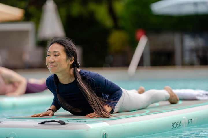 Plongez votre corps et votre esprit dans une séance de yoga sereine sur l'eau.