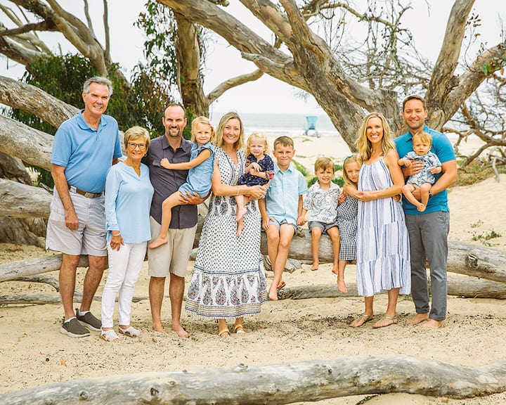 Propose 40 images retouchées par séance pour 6 membres de la famille.