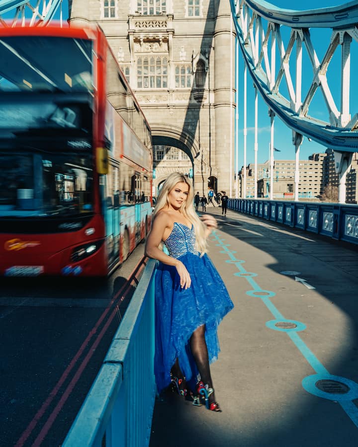 Séance photo de 30 minutes dans un lieu emblématique de Londres. Une tenue, un lieu et 25 images retouchées.