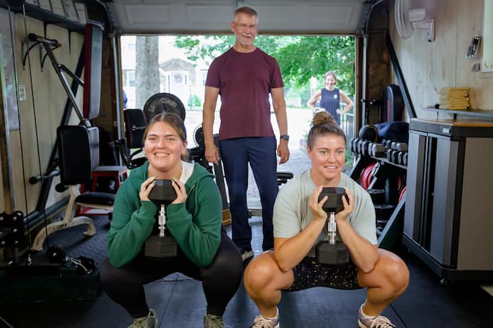Une séance d'entraînement en solo avec haltères, squats, tractions et échelles suédoises.